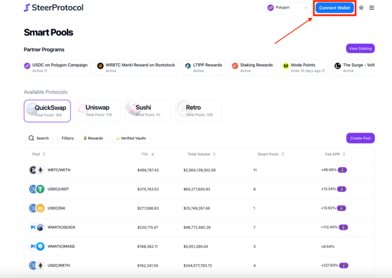 For those ready to begin their journey with Steer-Protocol, the first step involves connecting a compatible Web3 wallet to the platform. From there, users can explore the various vaults offered by Steer-Protocol, analyze historical performance data, and select strategies that align with their investment objectives and risk tolerance.